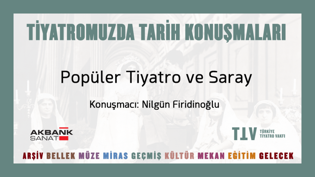 Tiyatromuzda Tarih Konuşmaları dizisinin XIX. ve bu dönem için son oturumu “Popüler Tiyatro ve Saray” başlıklı konuşmayla Noyan Ayturan moderatörlüğünde 14 Haziran Çarşamba günü Nilgün Firidinoğlu tarafından Akbank Sanat’ta gerçekleştirildi.