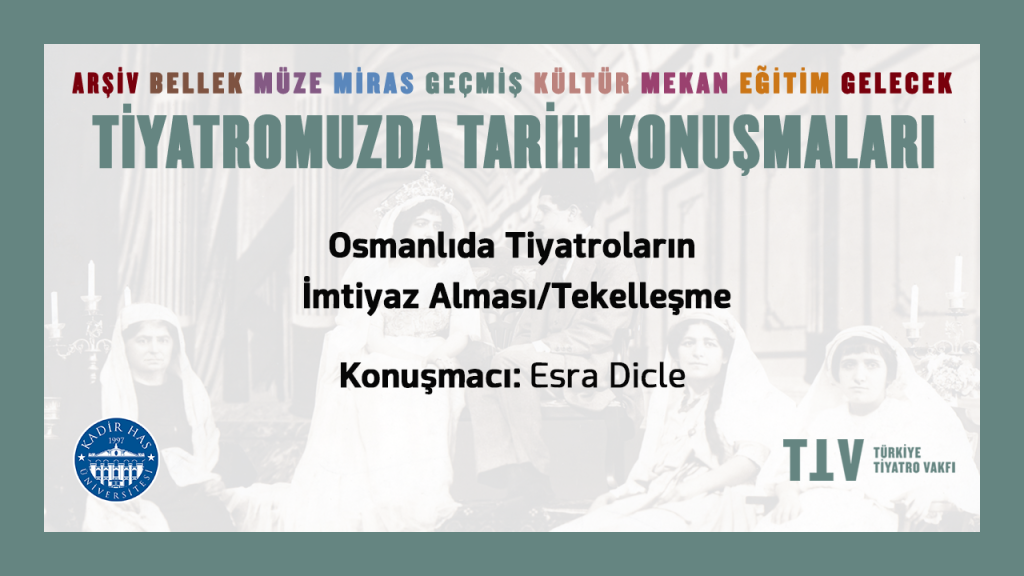 Tiyatromuzda Tarih Konuşmaları dizisinin XXI. oturumu Esra Dicle‘nin “Osmanlıda Tiyatroların İmtiyaz Alması/Tekelleşme” başlıklı konuşmasıyla 17 Şubat Cumartesi günü Kadir Has Üniversitesi’nde gerçekleştirildi. Osmanlı’da modern-batılı tiyatronun kurulması sürecinde Saray destekleyici ve denetleyici bir rol üstlenir. 19. yy’ın ikinci yarısından itibaren İstanbul’da tiyatro mekânlarının, gruplarının, izleyicilerinin sayısı artar ve tiyatro daha geniş bir daireye yayılmaya başlar. İstanbul’da tiyatronun gelişimi, modern şehir hayatının ve kamusal alanın oluşmasıyla etkileşim içinde gerçekleşir. İktidar bu yeni kamusal alandaki modernleşme deneyimini, dolayısıyla tiyatro faaliyetlerini de kontrol etmek için çeşitli imtiyaz, yasak, tekel uygulamalarına başvurur. Konuşmada bu düzenlemelerin estetik ve politik nedenlerine ve etkilerine değinildi.