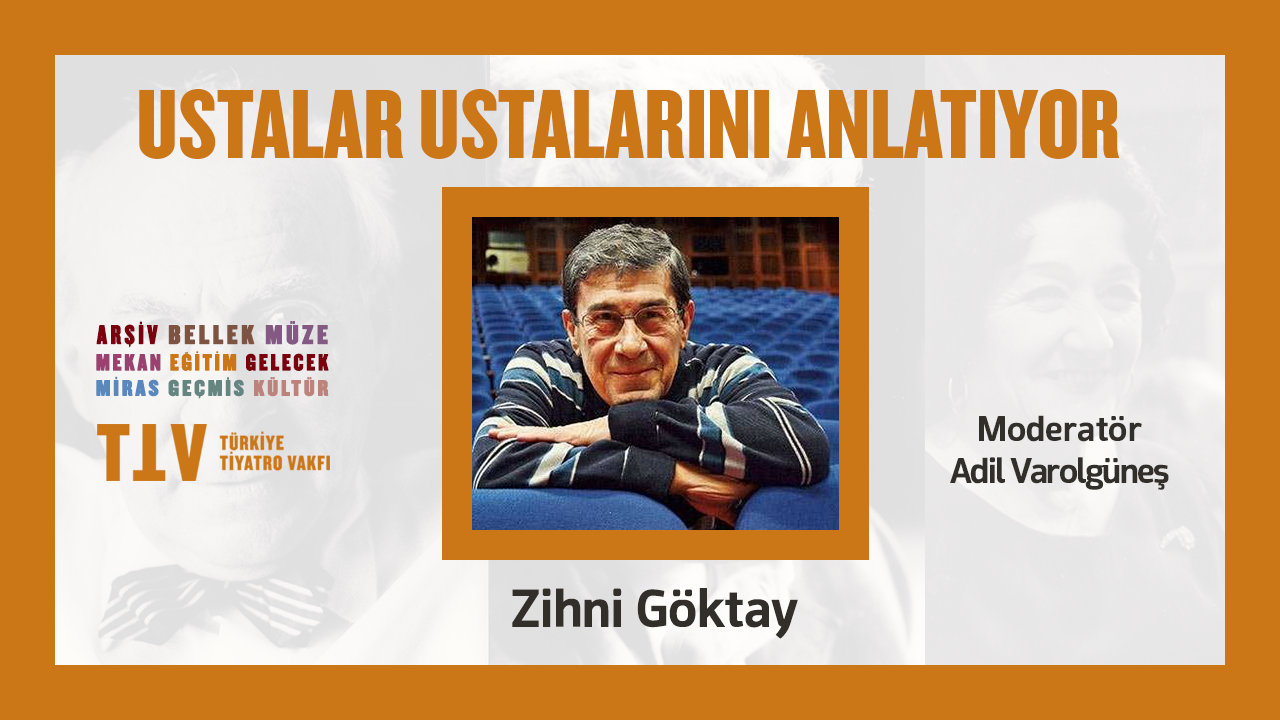 Türkiye Tiyatro Vakfı‘nın düzenlediği #UstalarUstalarınıAnlatıyor konuşma dizisinde usta tiyatrocular kendi ustalarını, usta bildiklerini anlatıyor, anılarını paylaşıyor. Moderatörlüğünü Adil Varolgüneş’in üstlendiği dizinin on dördüncü bölümünde konuğumuz Zihni Göktay.